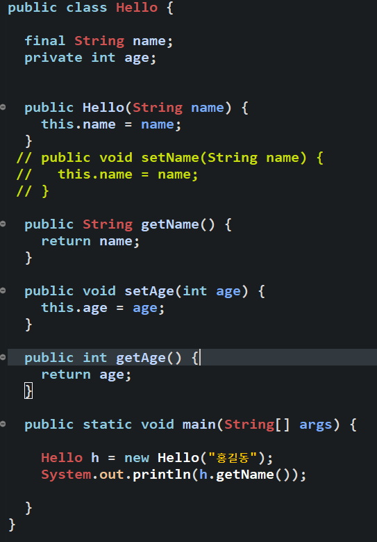 클래스 에서 만든 필드변수 중 final 이 붙으면 setter 접근도 안된다
