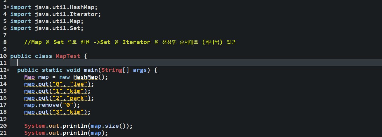 import 해준다 map 은 List 와 Set의 add로 입력하는것과 다르게 put 으로 입력을 해준다