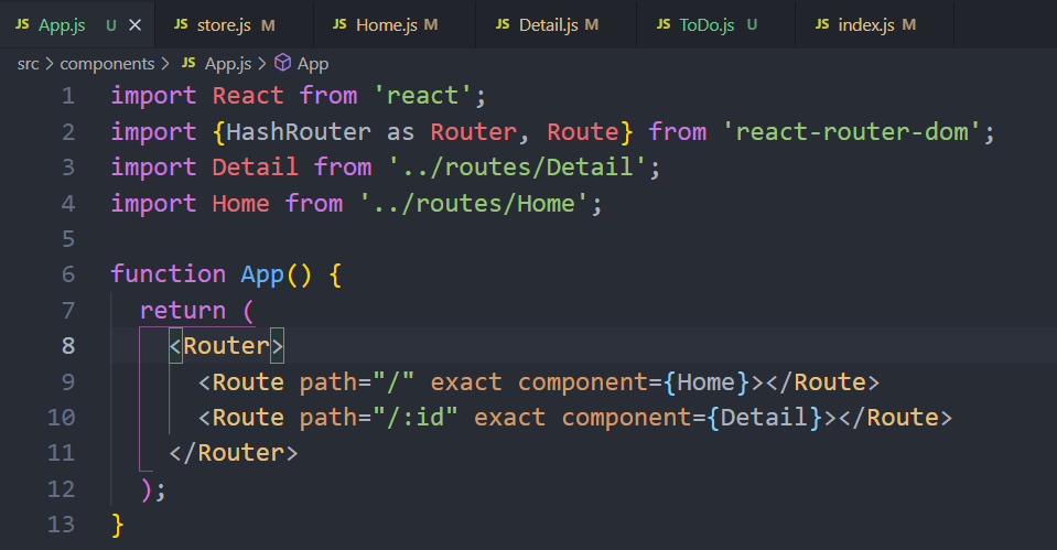 ToDo 파일에 li 태그안에 text 를 클릭시 Link 에 지정해놓은 경로, Detail 컴포넌트로 이동이됩니다.
