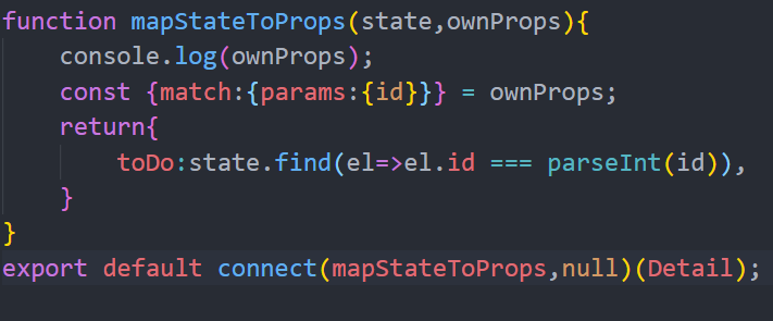 2) mapStateToProps( state , ownProps) 중 두번째 파라미터 ownProps 를 이용해도 id값을 쉽게 얻을수있습니다.